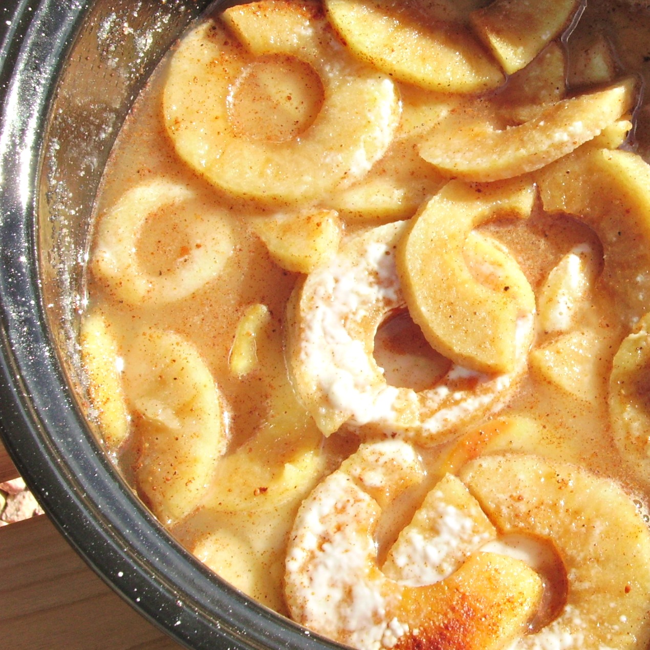 - Cover the pot with a lid and bake in a hot solar oven for about an hours until the apples are soft but not mushy.