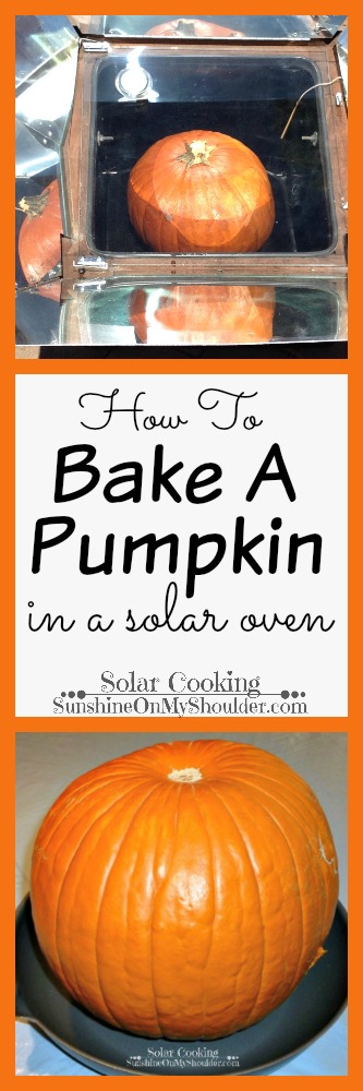 It’s that time of year when the weather turns cooler and we turn our thoughts to pumpkins, pumpkin pies, pumpkin soup, and pumpkin bread. Those delicious orange globes are not just for making jack-o-lanterns. With a solar oven, it is easy to turn those big beauty’s into a fresh homemade puree to use in all those wonderful goodies. So why buy a can of pumpkin mash when it is so easy to make your own baked pumpkin mash? And you don’t even need a fancy store bought solar oven to work the magic. Several years ago, I showed how to bake pumpkin in a very inexpensive solar oven, but you could substitute a solar device made out of a windshield screen and get the same results.