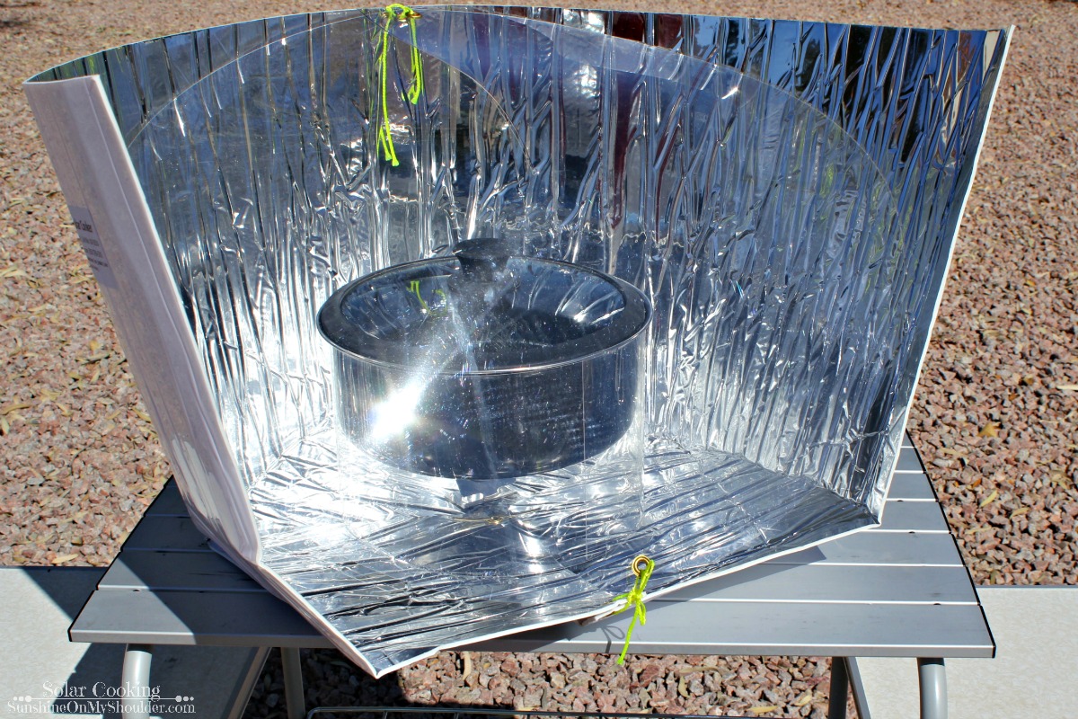 I used the Haines Solar Cooker. Place the cooking pot into the clear plastic cooking sleeve and adjust the clear dome to be sure it covers the open side of the cooker.