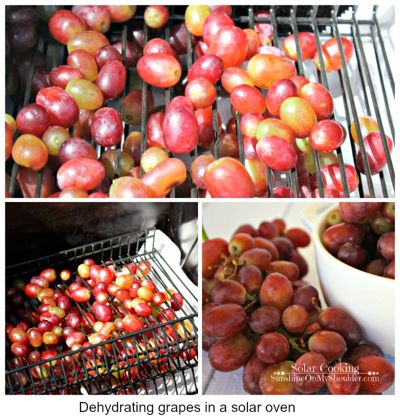 To dry or dehydrate grapes or other fruit in a solar oven is a useful method of preserving excess produce.