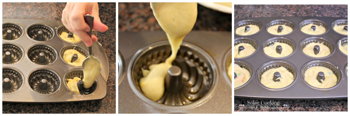 - Spray a mini bundt pan with cooking spray.