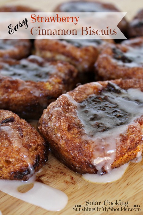 Easy Strawberry Cinnamon Biscuits makes a nice breakfast treat at home or camping. These can be baked in a traditional oven, a dutch oven, as well as the solar oven. I baked mine in a Solavore Sport Solar Oven.