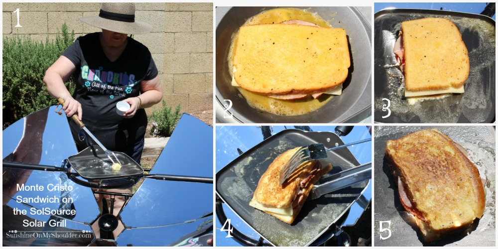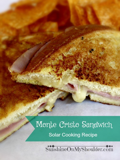 Monte Cristo Sandwich is always a crowd pleaser and it can be cooked outside on a parabolic solar grill.