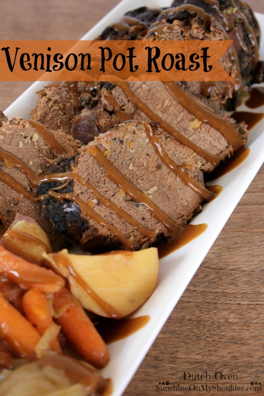 Venison is game meat from the deer family, including deer, elk, and moose. It is less fatty than beef. Last fall, a co-worker gave Mr. B a really nice little piece of elk. We stuck it in the freezer until we could find the time to cook it. Fast forward to today. It was a cloudy, hazy winter day. Not quite right for solar cooking. Finding that piece of elk in the freezer, we decided it was a good day to practice our dutch oven cooking skills by making a venison pot roast.